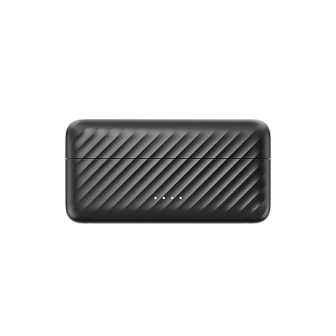 The transmitter features a soundwave-textured see-through body — AI power you can see. Now 25% smaller than the previous generation, yet smarter and stronger. Up to 9 hours* on a single charge, 54 hours with the case. Charge while in use — built for non-stop streaming.